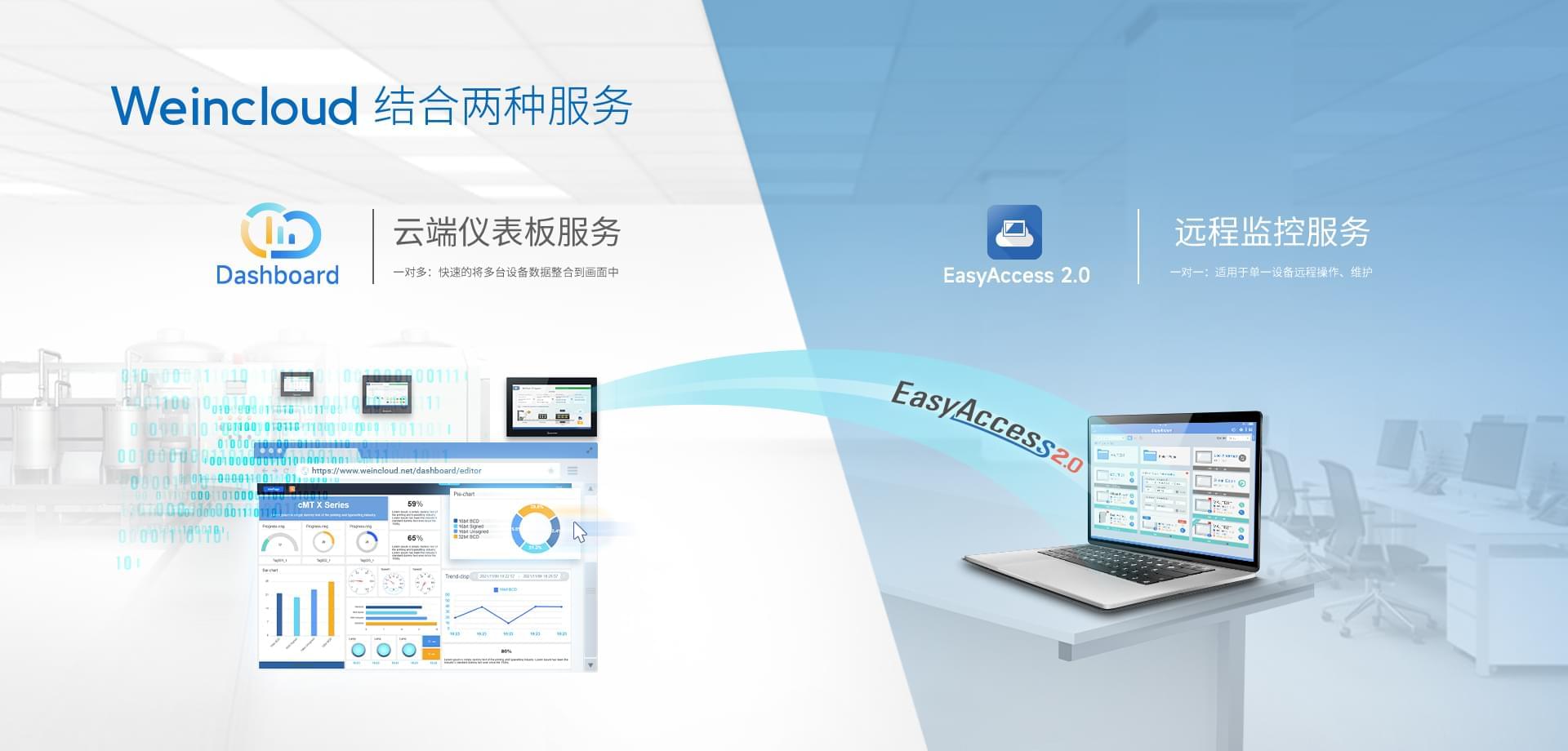 Weincloud 集結EasyAccess2.0遠程監(jiān)控服務及Dashboard云端儀表服務,將設備資料數據上云并以視覺化呈現(xiàn),協(xié)助管理者實時掌控現(xiàn)場產線狀態(tài)。